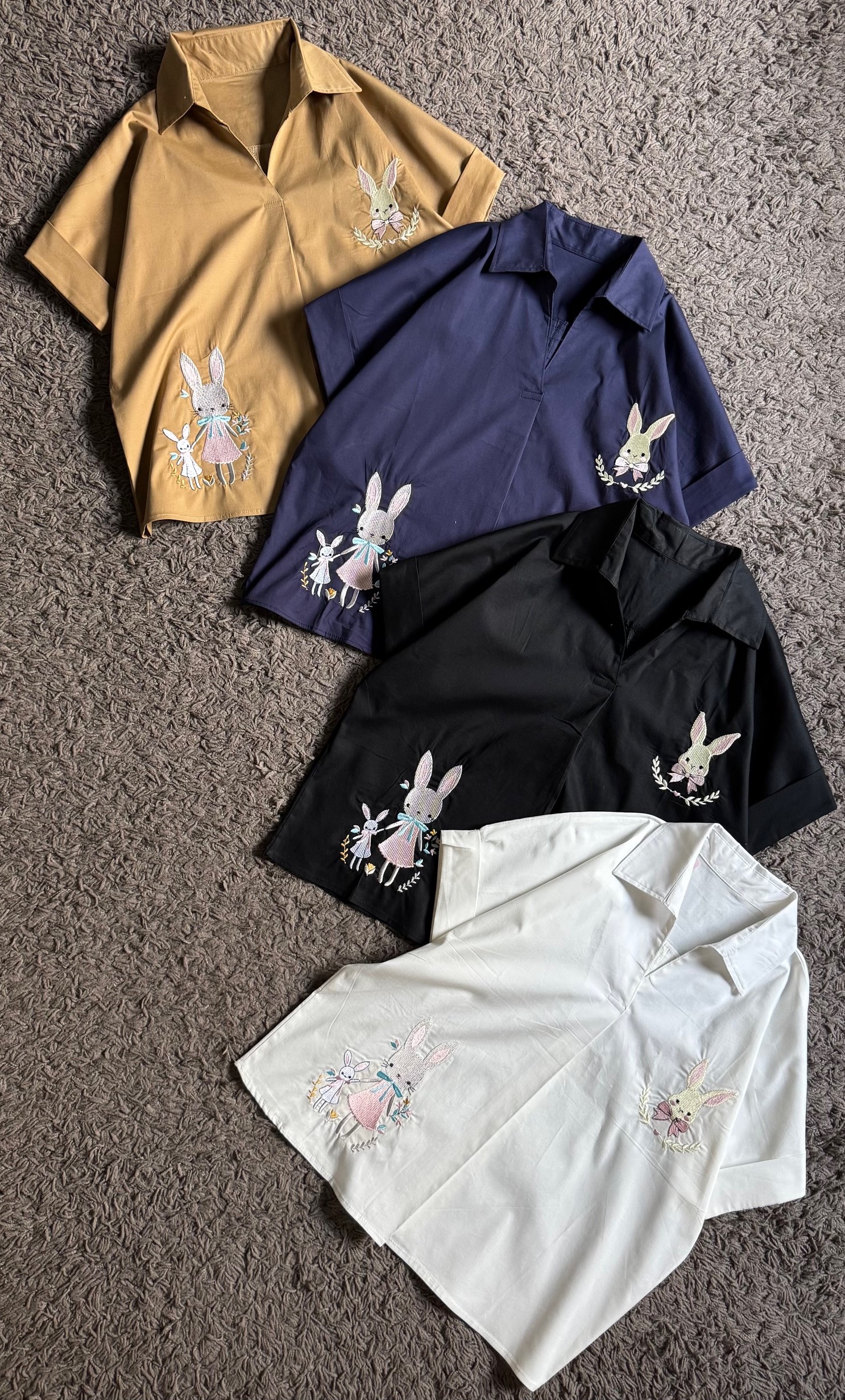 Ndudshop – Bunny shirt (Kode: 5076) – Atasan Wanita – Kemeja Wanita – Kemeja Kasual Wanita – Kemeja Motif Kelinci Wanita – Kemeja Katun Poplin Wanita