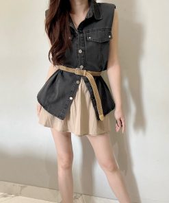 Ndudshop – Denim set + belt (Kode: 4835) – Setelan Wanita – Setelan Skort Wanita – Setelan Rok Celana Wanita – Setelan Denim Wanita – Setelan Dengan Belt Wanita