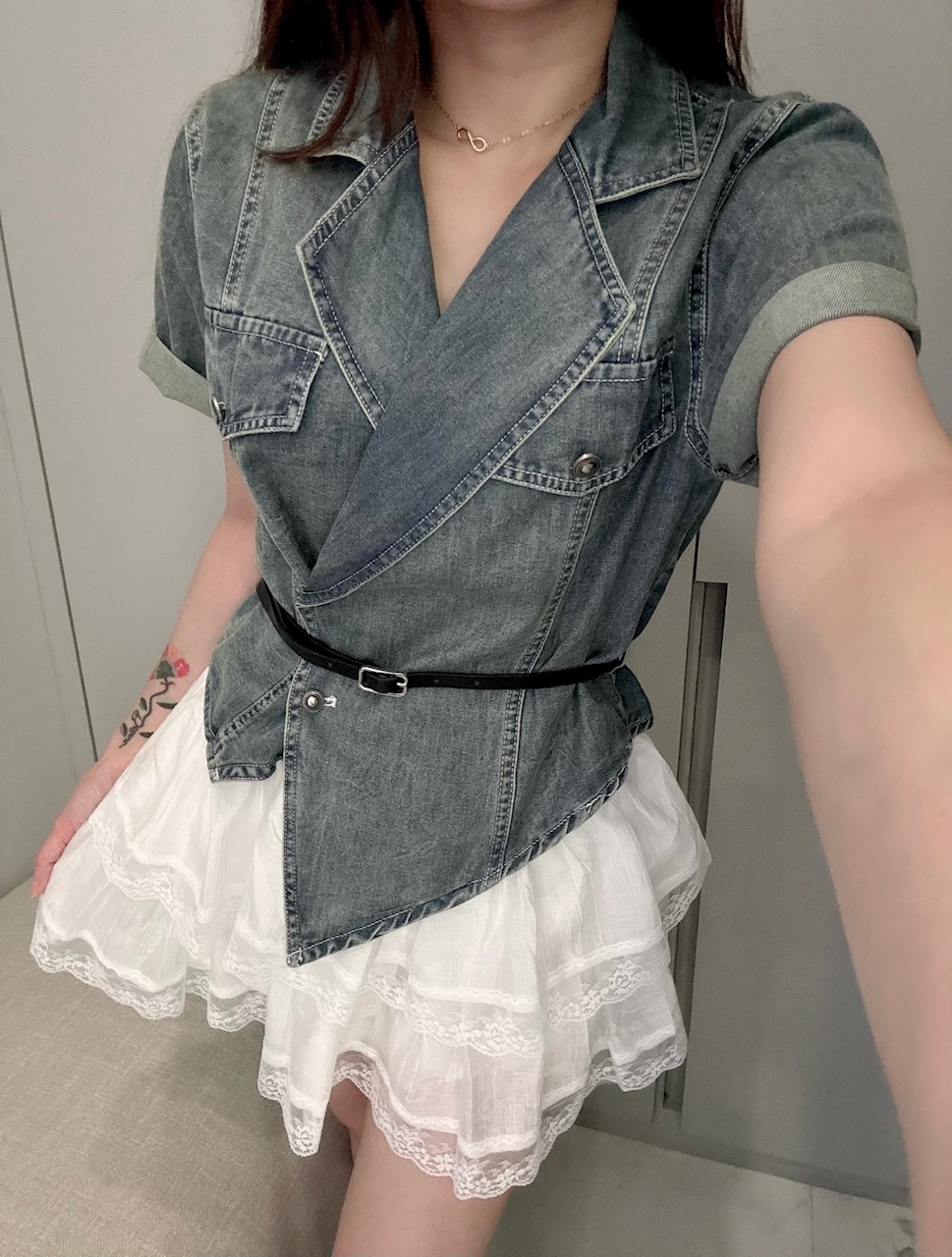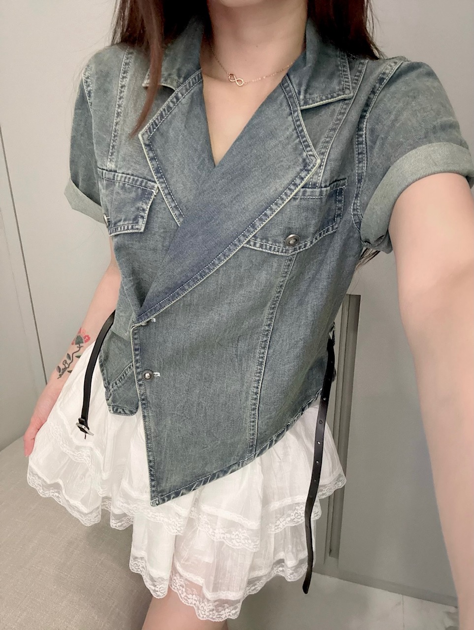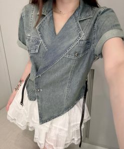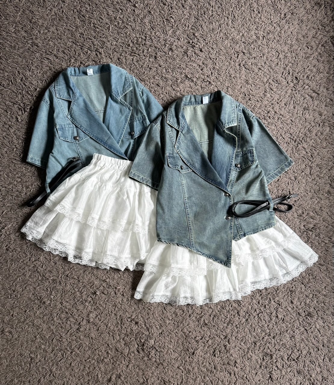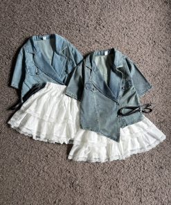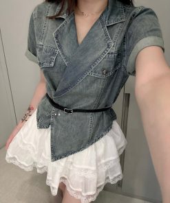 Ndudshop – Denim set + belt (Kode: 5128) – Setelan Wanita – Setelan Skort Wanita – Setelan Rok Celana Wanita – Setelan Kasual Wanita – Setelan Denim Import Wanita – Skort Katun Crinkle Wanita