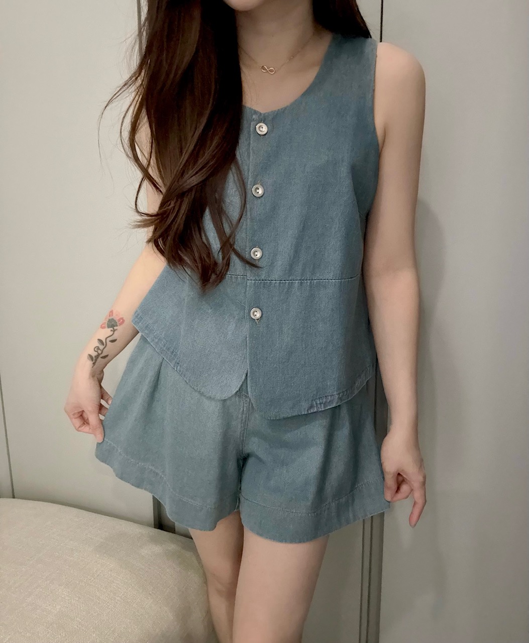 Ndudshop – Denim set (Kode: 5473) – Setelan Wanita – Setelan Shorts Wanita – Setelan Kasual Wanita – Setelan Celana Pendek Wanita – Setelan Denim Wanita
