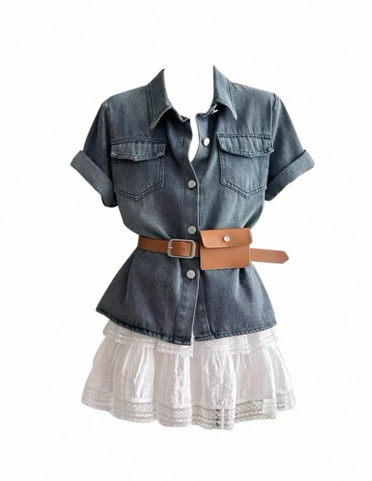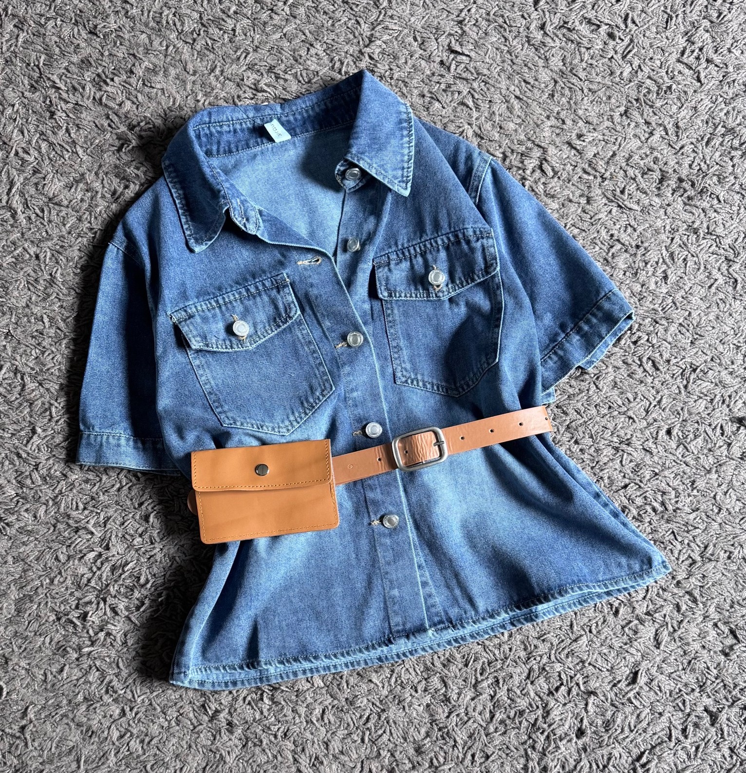 Ndudshop – Denim shirt + waist bag (Kode: 5386) – Atasan Wanita – Kemeja Denim Wanita – Atasan Denin Wanita – Kemeja Kasual Wanita – Kemeja dengan Wasitbag Wanita