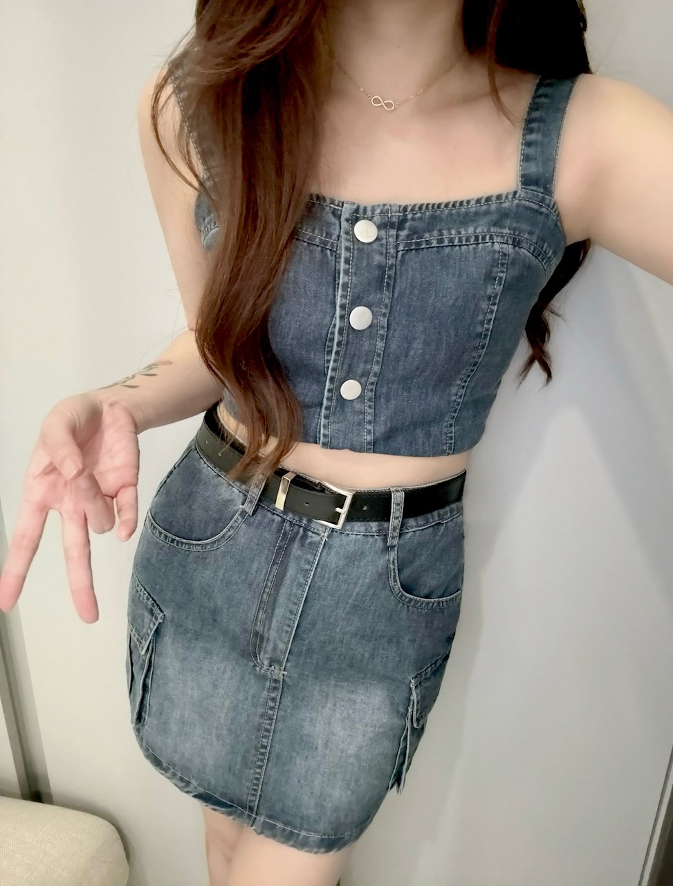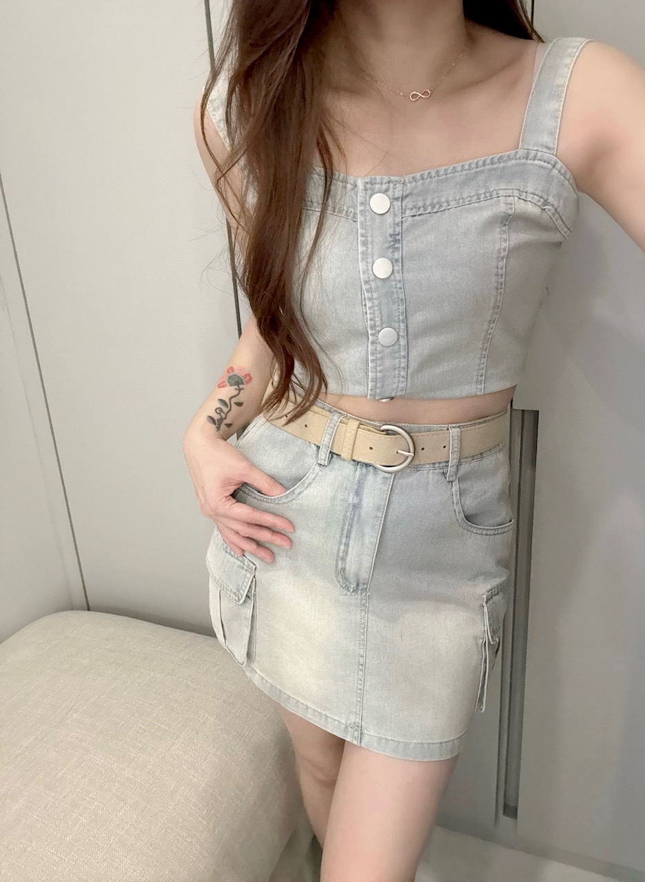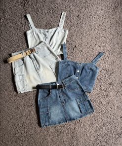 Ndudshop – Denim skirt set + belt (Kode: 5169) – Setelan Wanita – Setelan Skirt Wanita – Setelan Rok Wanita – Setelan Kasual Wanita – Setelan Rok Denim Wanita – Setelan Jeans Wanita