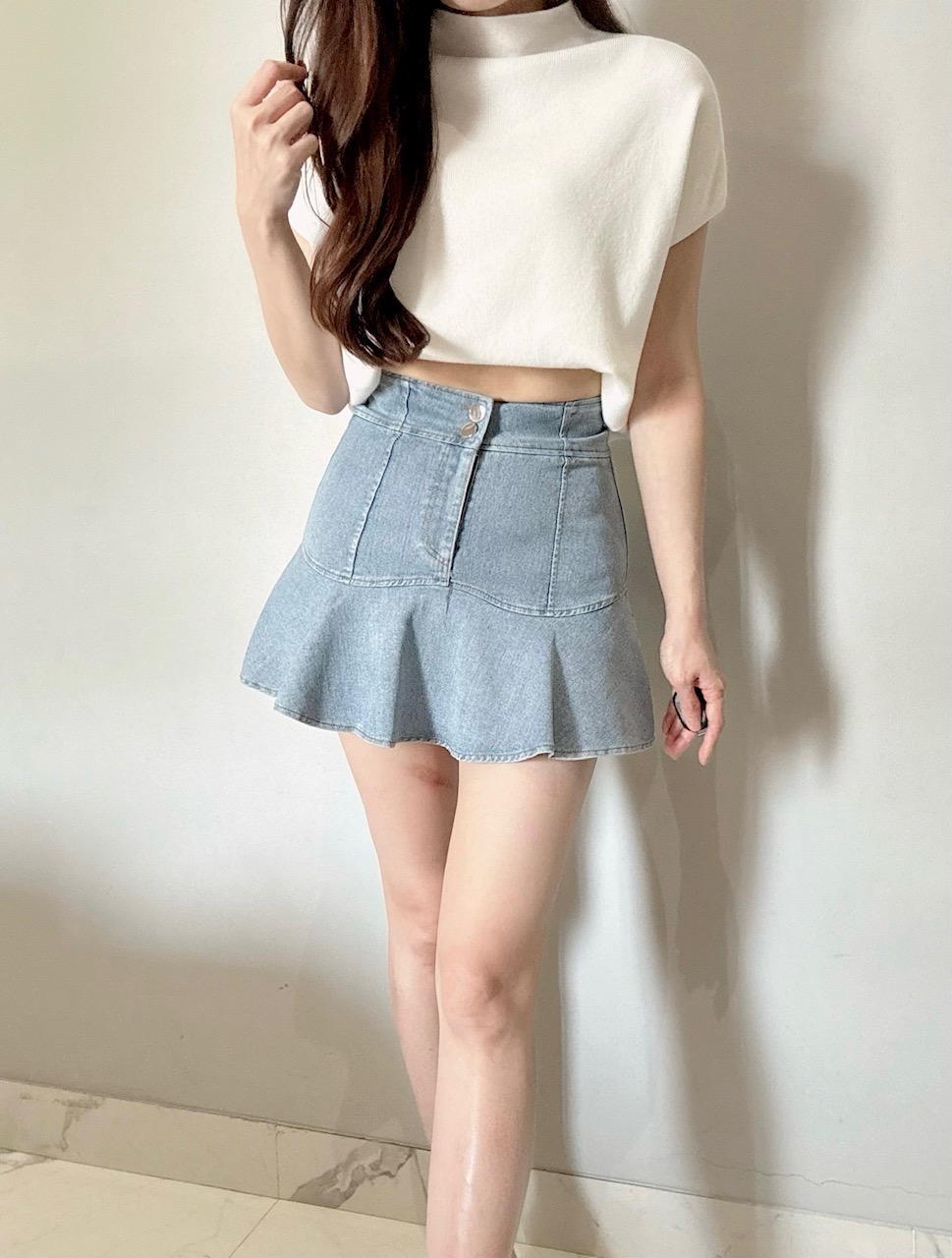 Ndudshop – Denim skort (Kode: 4853) – Bawahan Wanita – Skort Wanita – Rok Celana Wanita – Skort Denim Wanita – Rok Celana Denim Wanita