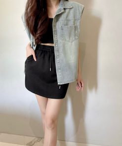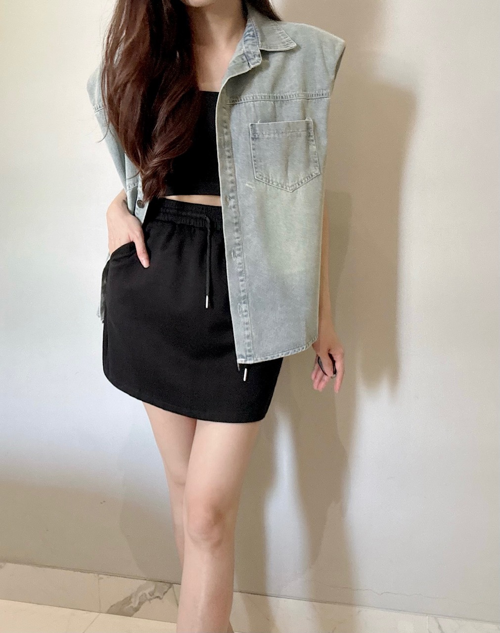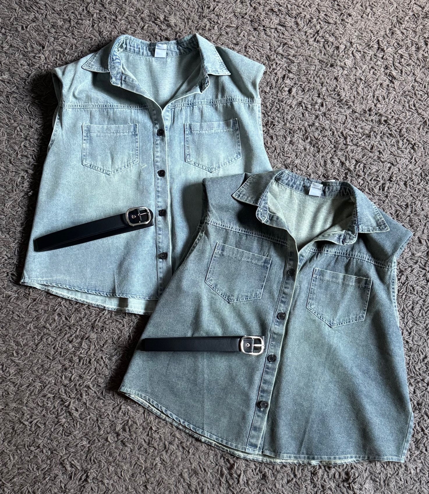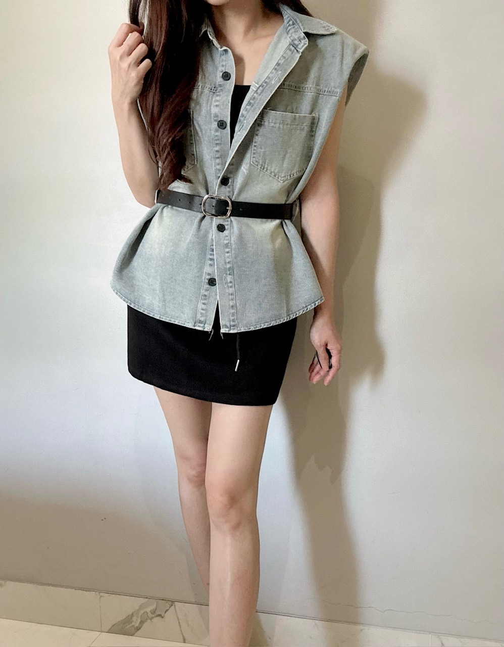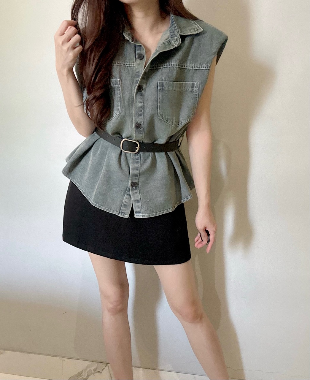 Ndudshop – Denim top + belt (Kode: 4848) – Atasan Wanita – Atasan Denim Wanita – Atasan Kasual Wanita – Atasan Belt Wanita