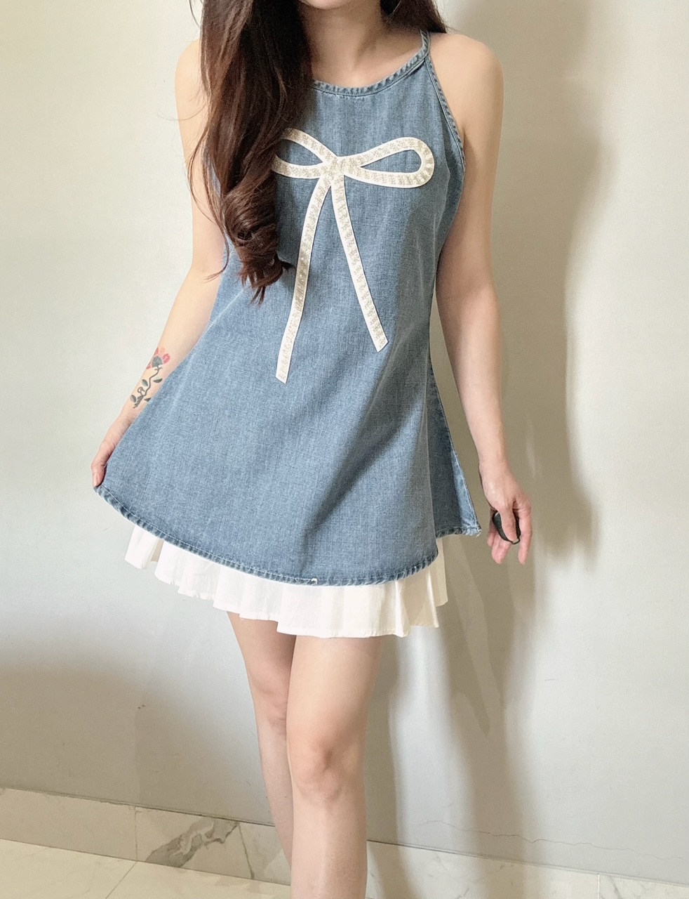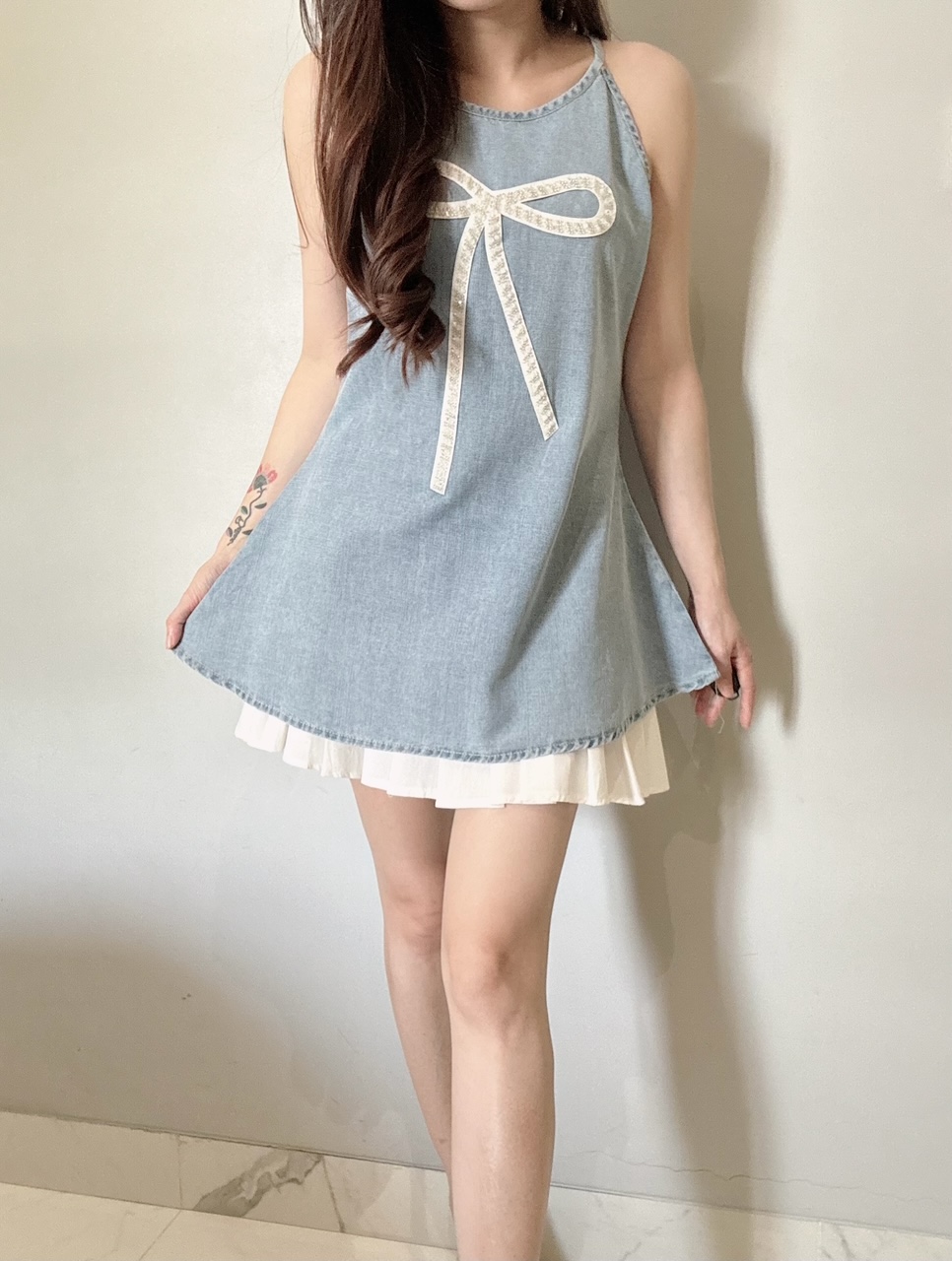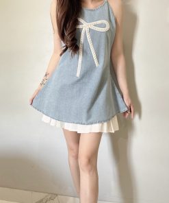 Ndudshop – Denim top (Kode: 4942) – Atasan Wanita – Atasan Denim Wanita – Atasan Kasual Wanita – Atasan Motif Pita Wanita
