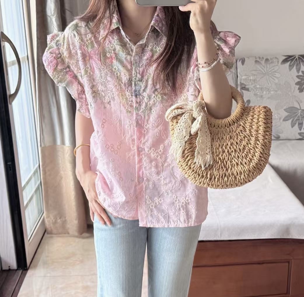 Ndudshop – Embroidery flo shirt (Kode: 5285) – Atasan Wanita – Kemeja Wanita – Kemeja Motif Bunga Wanita – Kemeja Imlek Wanita – Kemeja Katun Embroidery Wanita