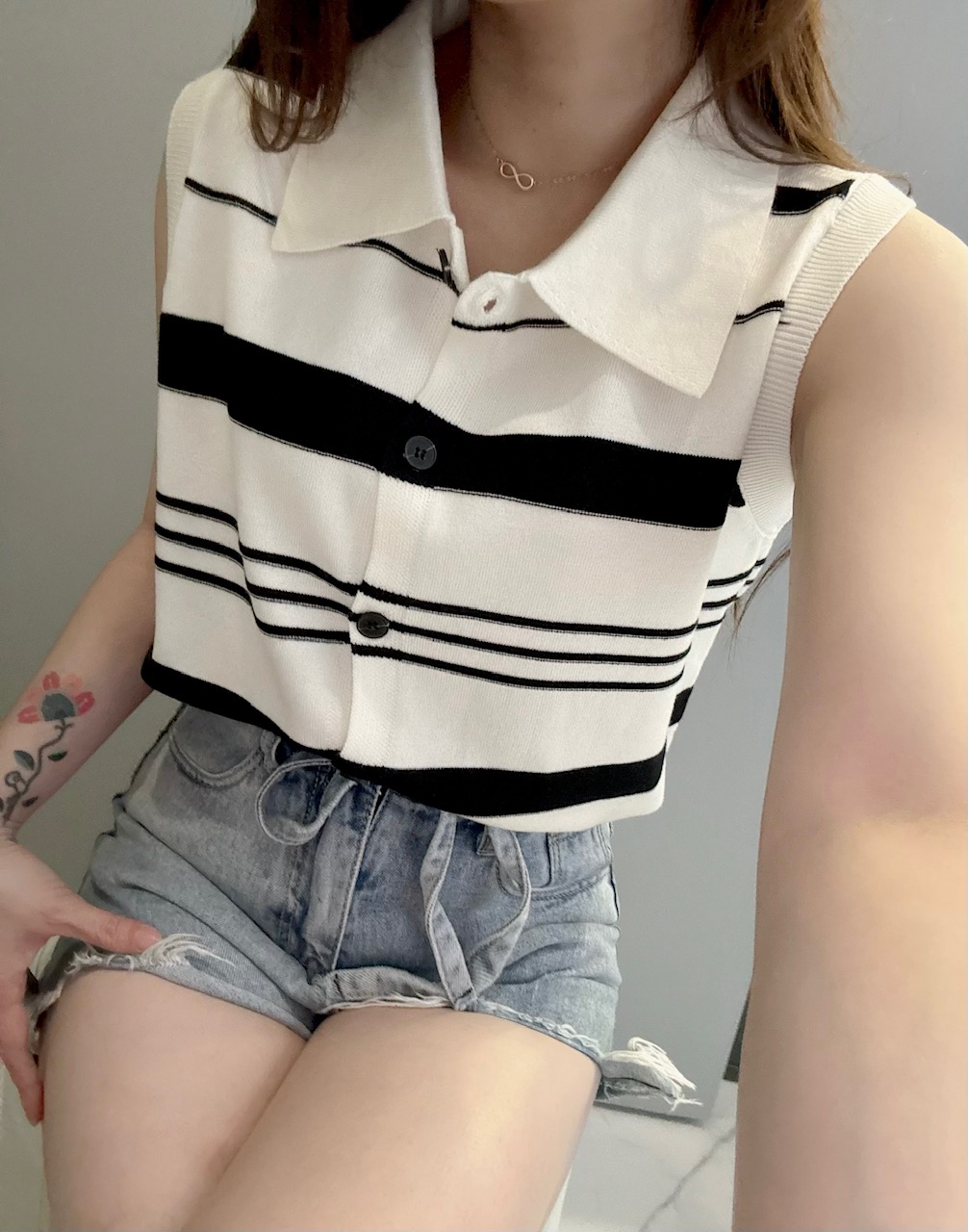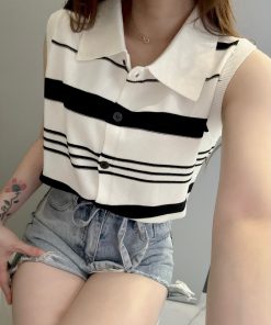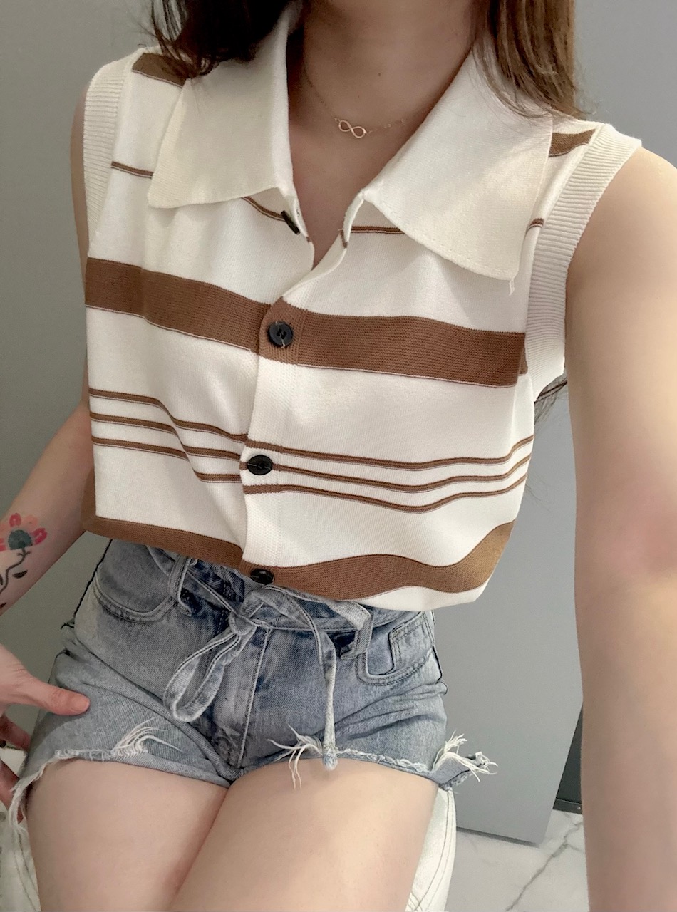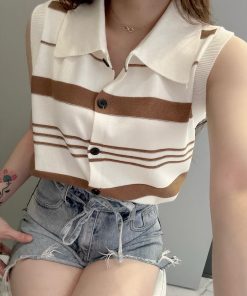 Ndudshop – Knit top (Kode: 5174) – Atasan Wanita – Atasan Rajut Import Wanita – Atasan Kasual Wanita – Atasan Motif Garis-garis Wanita