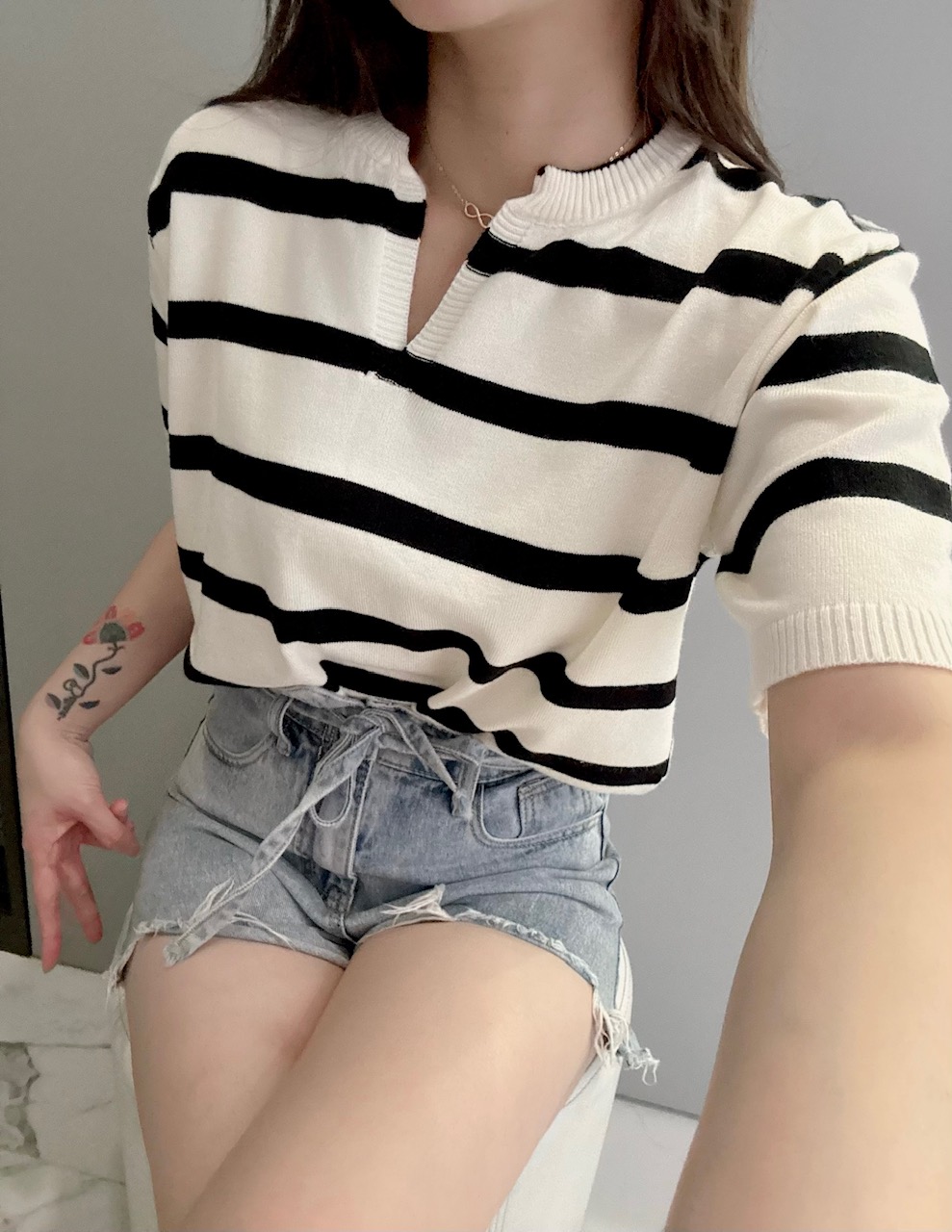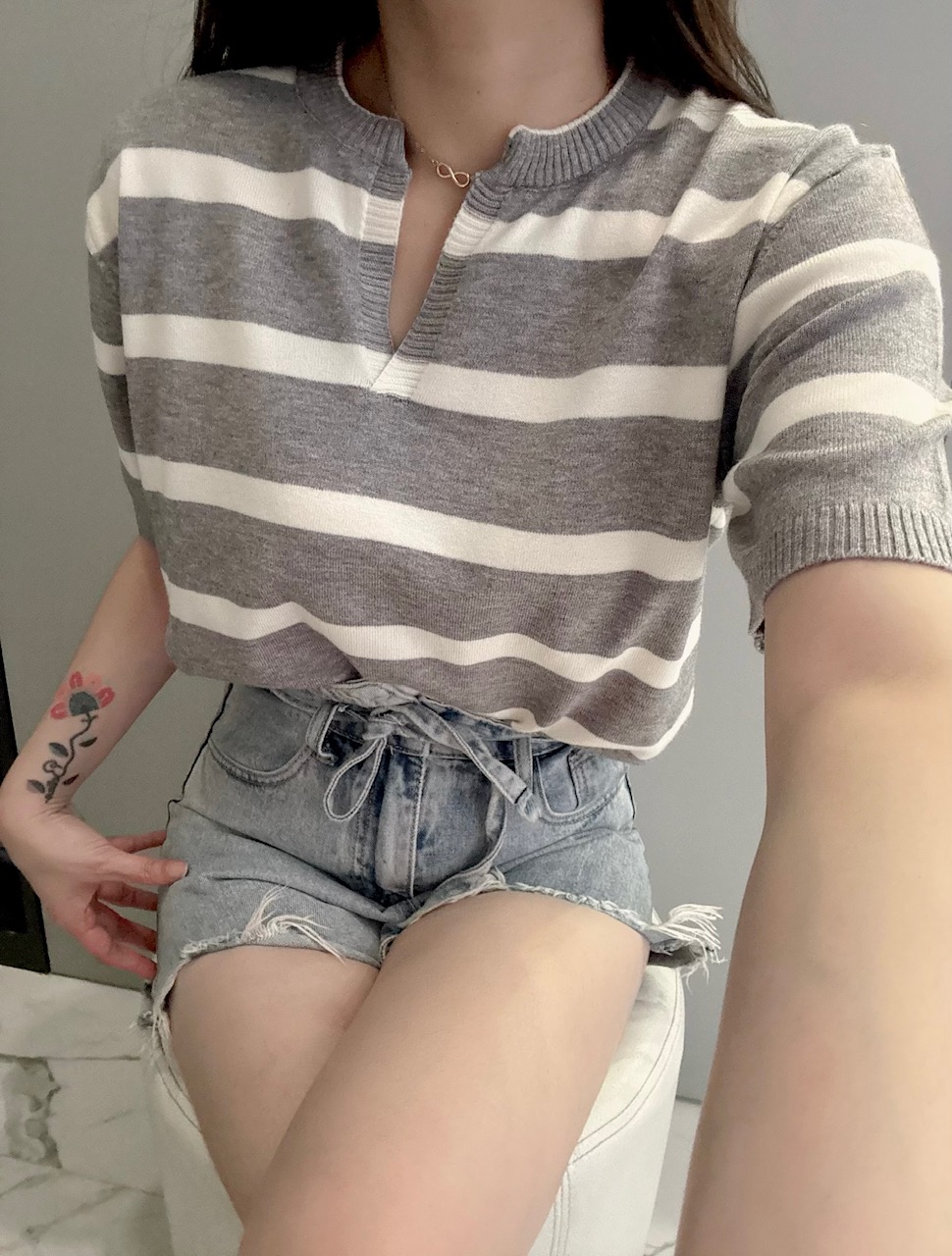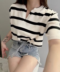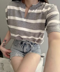 Ndudshop – Knit top (Kode: 5387) – Atasan Wanita – Atasan Rajut Wanita – Atasan Kasual Wanita – Atasan Motif Garis Wanita