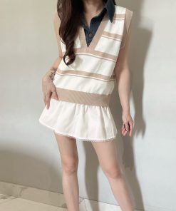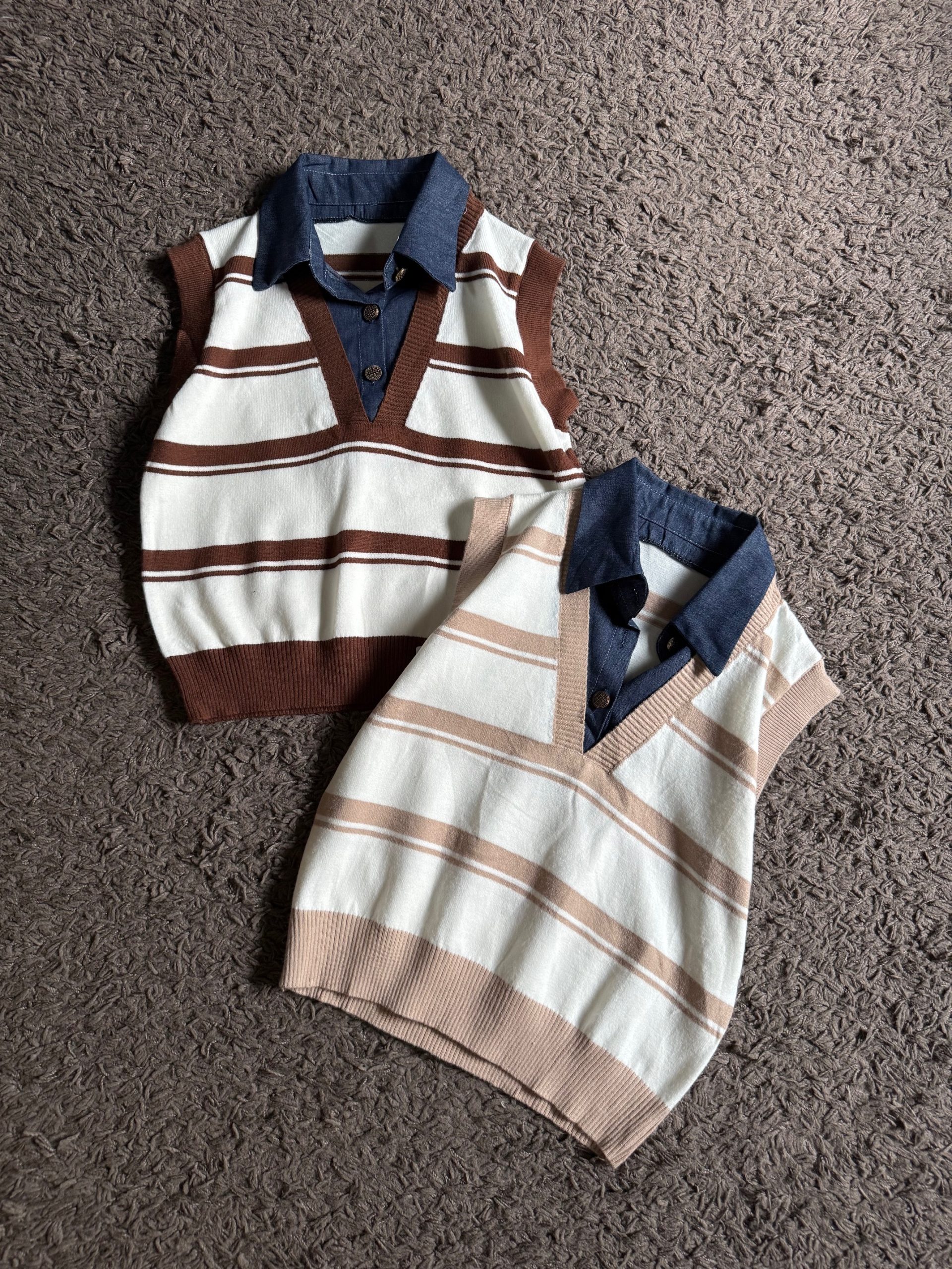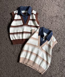 Ndudshop – Knit vest (Kode: 4794) – Atasan Wanita – Vest Wanita – Vest Rajut Wanita – Rompi Motif Garis Wanita – Rompi Rajut Wanita