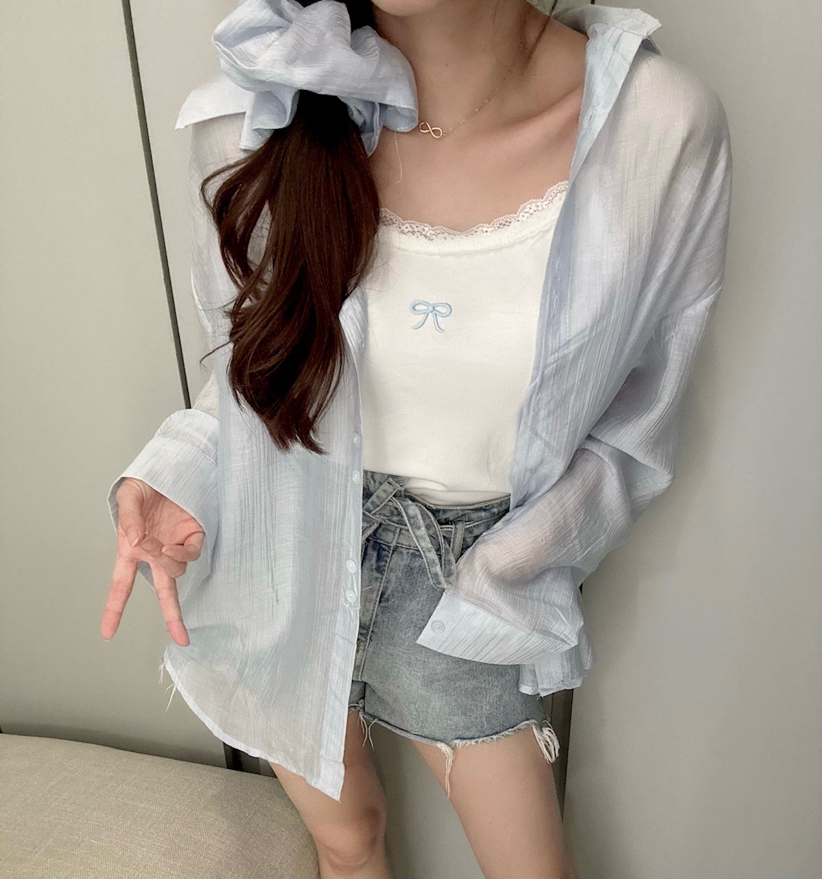 Ndudshop – See through shirt set (Kode: 5292) – Setelan Wanita – Atasan Wanita – Setelan Kemeja Wanita – Setelan Kasual Wanita