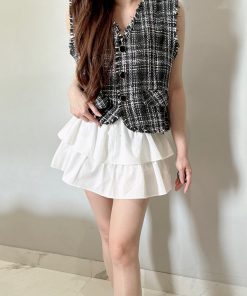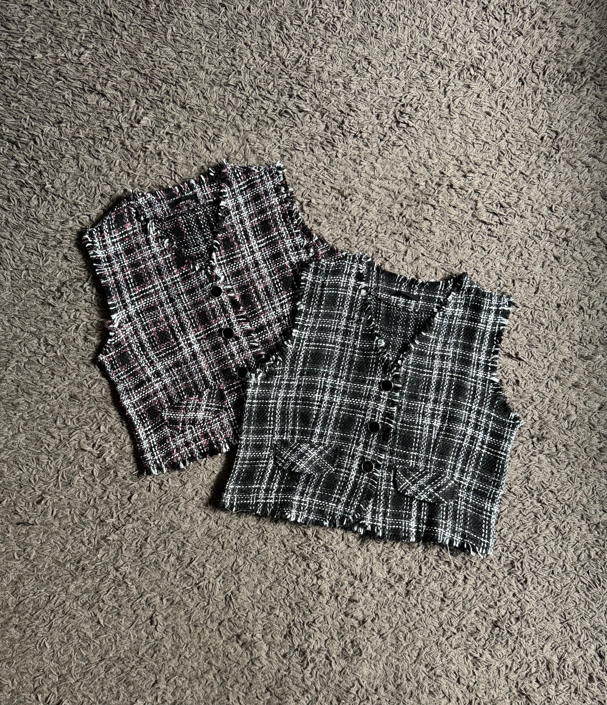 Ndudshop – Tweed vest (Kode: 5089) – Atasan Wanita – Vest Wanita – Vest Tweed Wanita – Rompi Wanita – Rompi Kasual Wanita