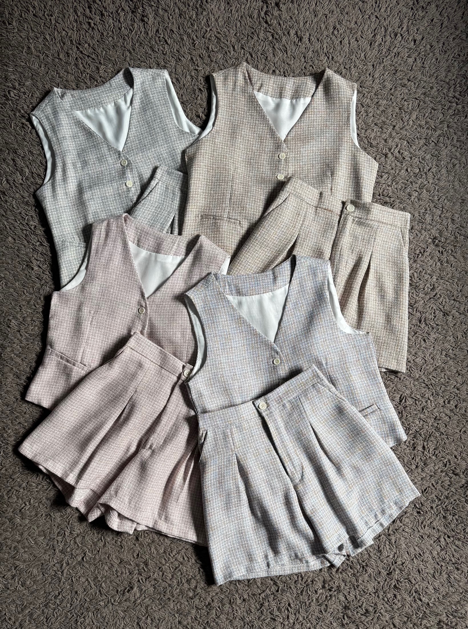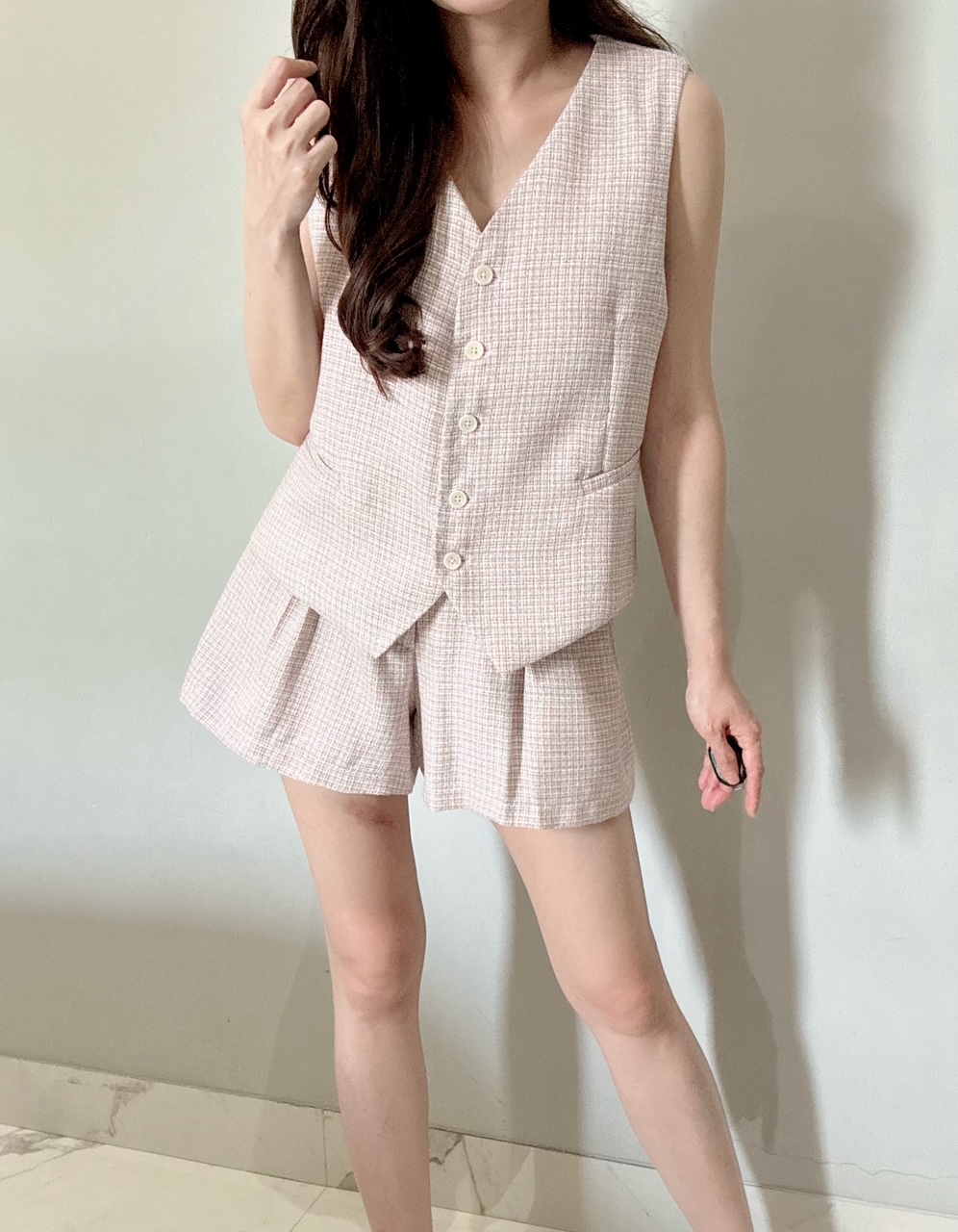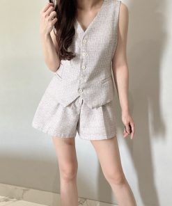 Ndudshop – Tweed vest set (Kode: 4798) – Setelan Wanita – Setelan Celana Pendek Wanita – Setelan Tweed Wanita – Setelan Vest Wanita – Setelan Rompi Wanita